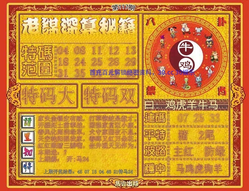 | 117期:平特一尾--《4444尾》--开:虎04准 |