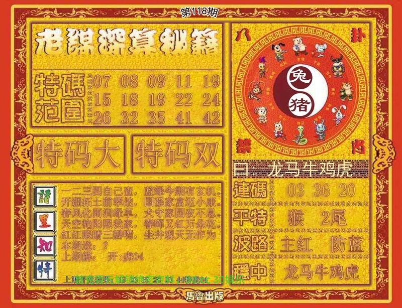| 118期:平特一尾--《0000尾》--开:猴10准 |
