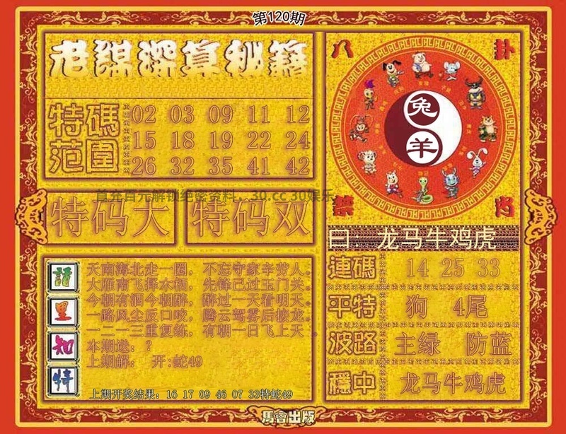 | 120期:平特一尾--《8888尾》--开:龙38准 |